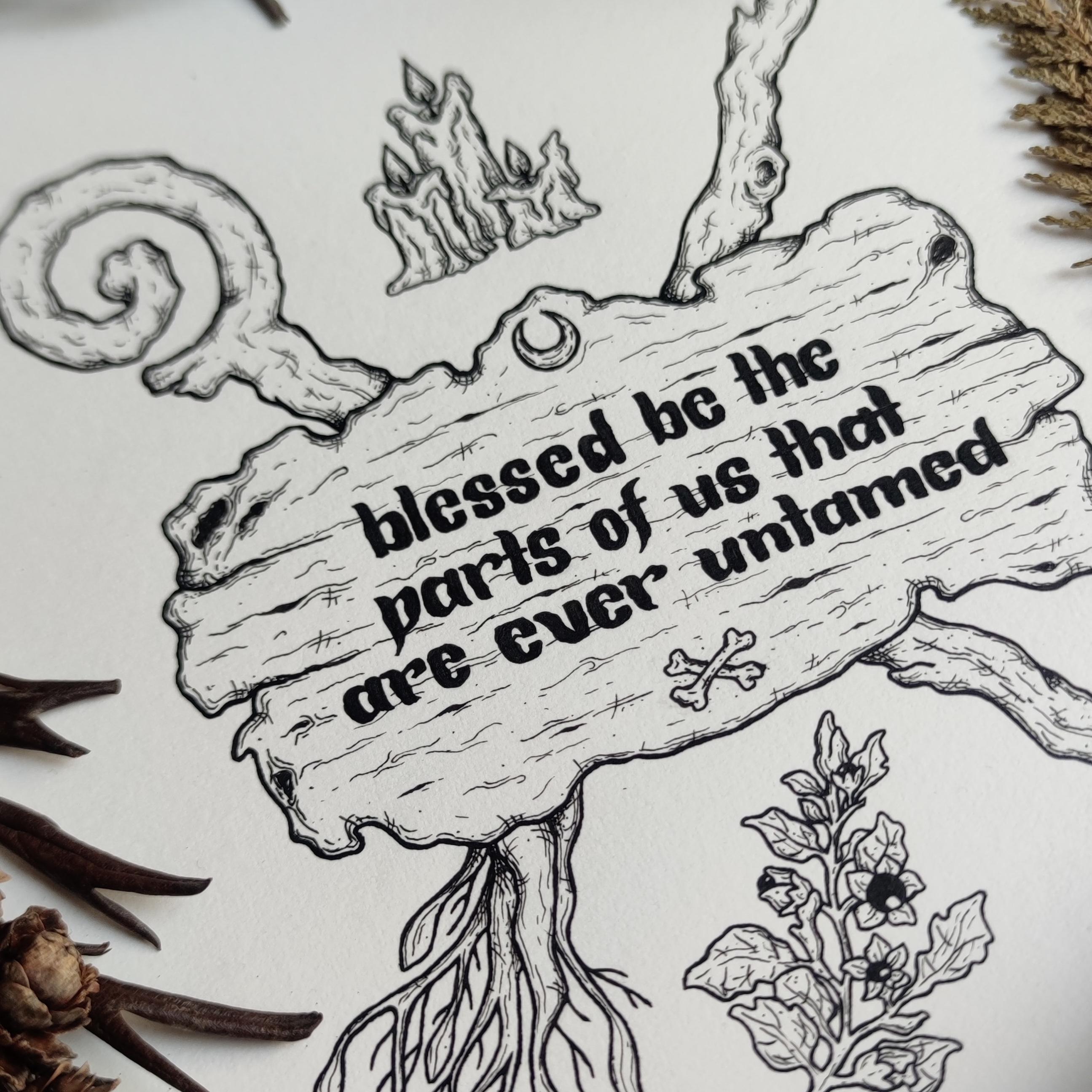 Blessed Be The Part of Us That Are Ever Untamed ☾ Witchcore Fine Art Screenprint