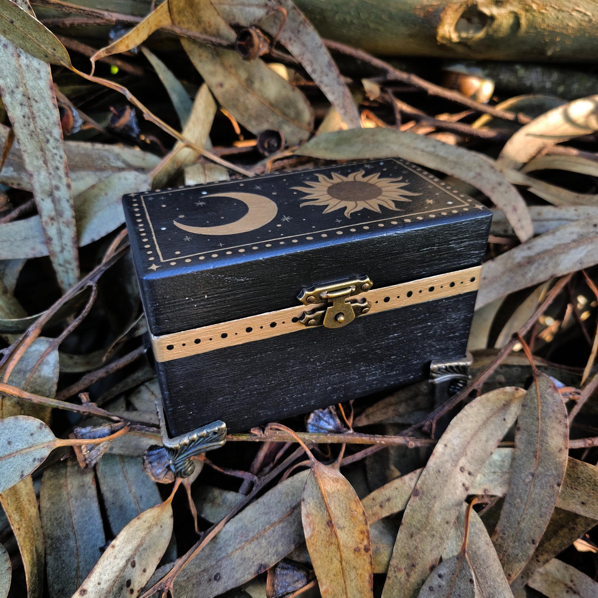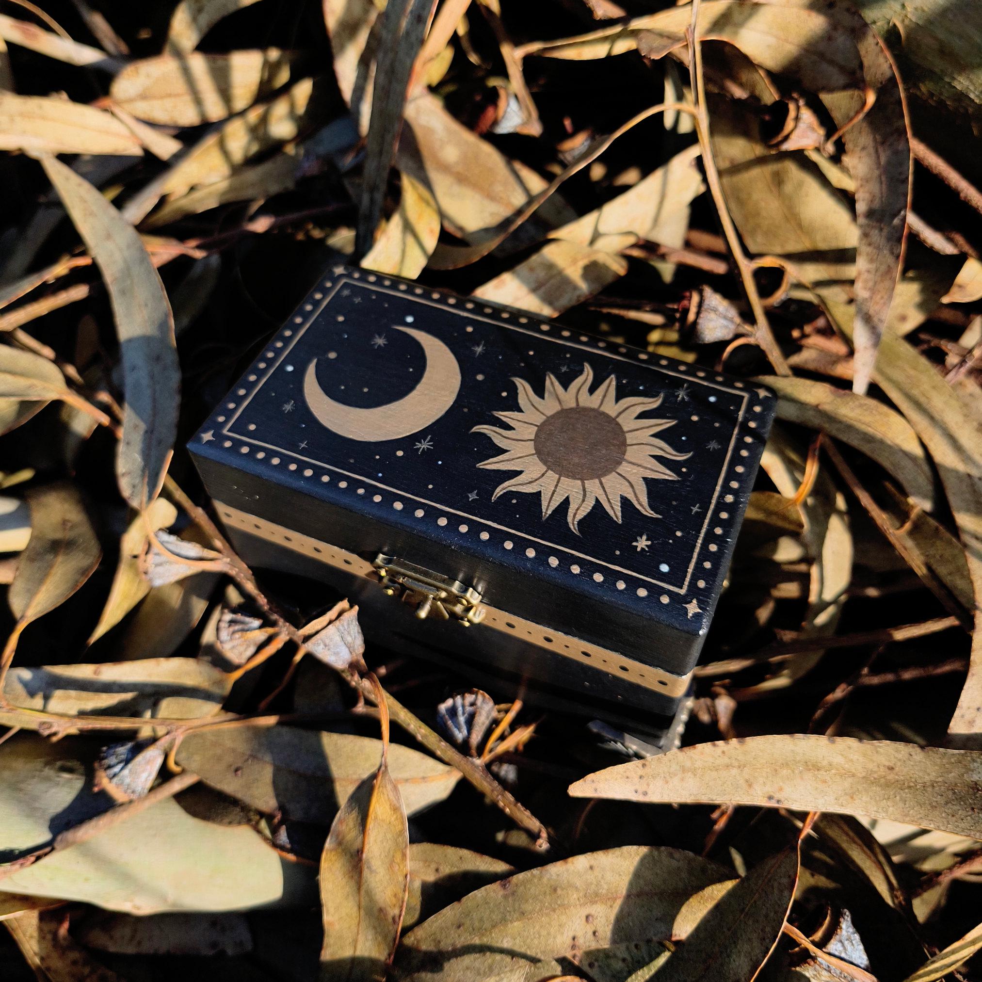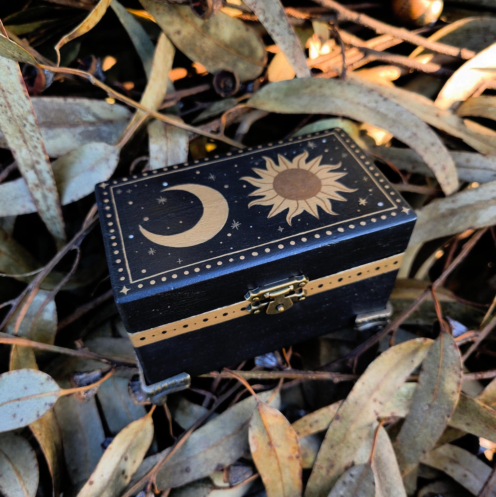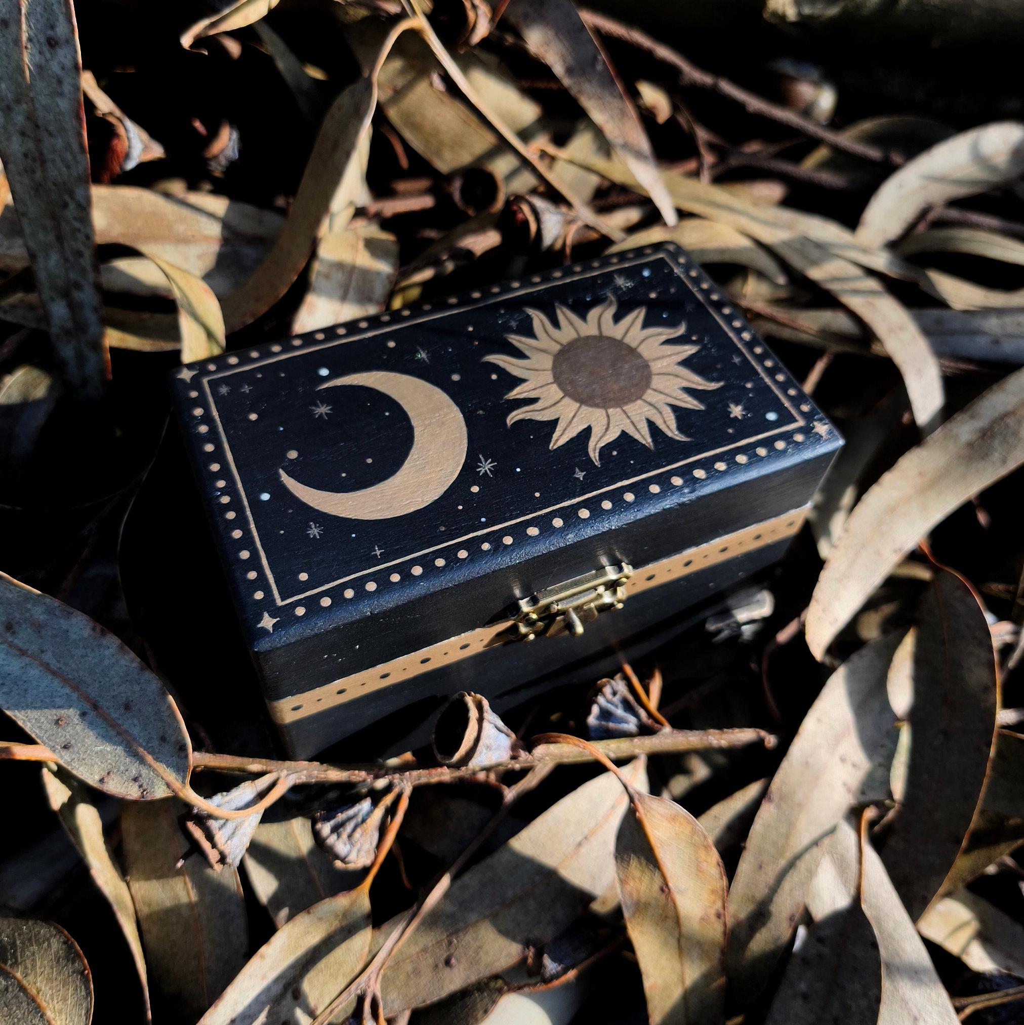 This storage box makes a thoughtful gift for witches, pagans, or anyone enchanted by mystical arts, whimsical gothic decor or witchy home style. Perfect for keeping crystals, small pagan treasures and trinkets while adding a mystical touch of decor to your home.